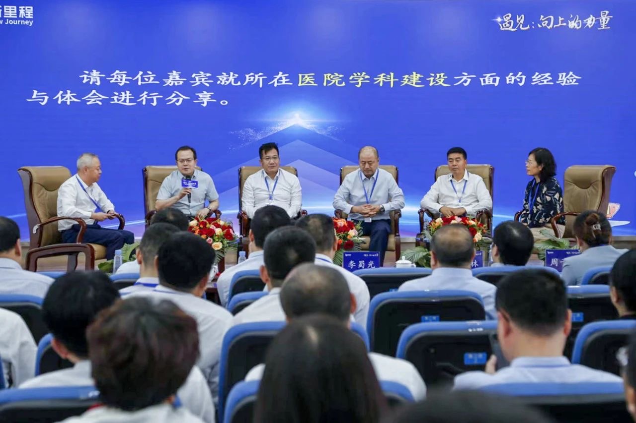 在盛融泰和(遼甯)健康産業管理有限公司高級副總裁李蜀光(guāng)的主持下,盛融泰和(遼甯)健康産業管理有限公司副總裁、兖礦新裡(lǐ)程總醫院院長王愛亮,新裡(lǐ)程健康科(kē)技集團副總裁聶晨,蘭考第一醫院集團總院長(總經理(lǐ))王冰,晉城(chéng)大(dà)醫院黨委書(shū)記、院長薛偉民(mín),西安市北方醫院黨委書(shū)記、院長劉向利就(jiù)“學科(kē)建設與醫院高質量發展”開展專題討(tǎo)論。