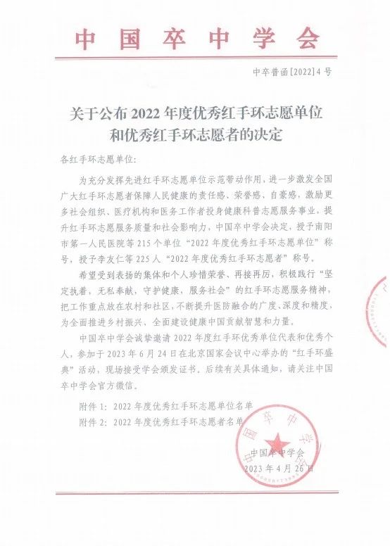近日(rì),中國(guó)卒中學會發布《關于公布2022年(nián)度優秀紅(hóng)手環志願單位和優秀紅(hóng)手環志願者的決定》,該決定顯示,太原西山(shān)醫院榮獲2022年(nián)度全國(guó)優秀紅(hóng)手環志願單位稱号,這是該院連續兩年(nián)獲此殊榮;神經内科(kē)主任張冬萍、神經内科(kē)大(dà)夫楊梅榮獲2022年(nián)度全國(guó)優秀紅(hóng)手環志願者稱号。